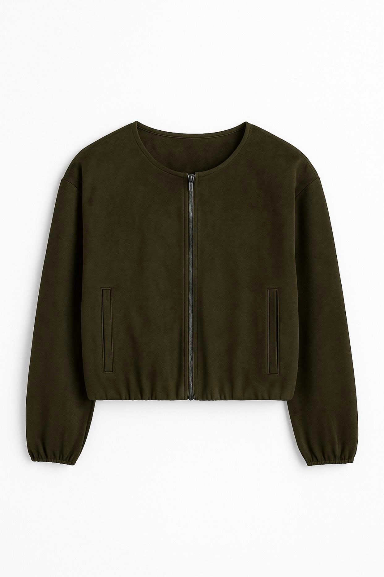 Oval Yaka, Uzun Kol,Önü Fermuarlı, İçi Astarlı Ceket