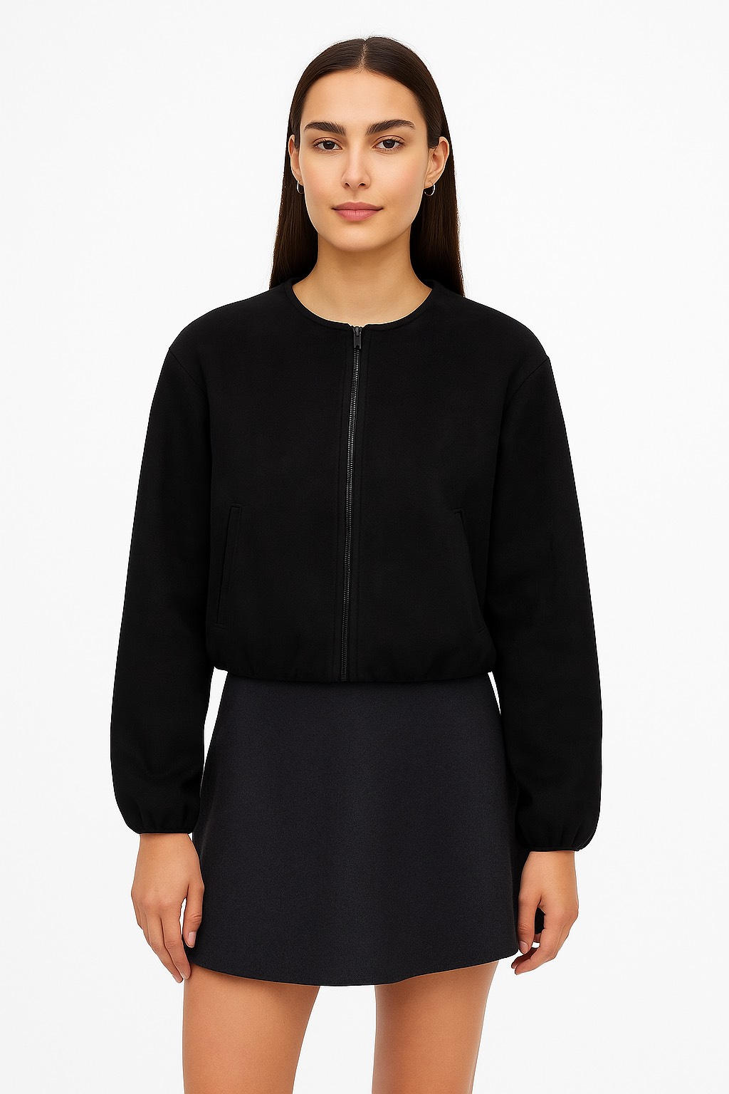 Oval Yaka, Uzun Kol,Önü Fermuarlı, İçi Astarlı Ceket