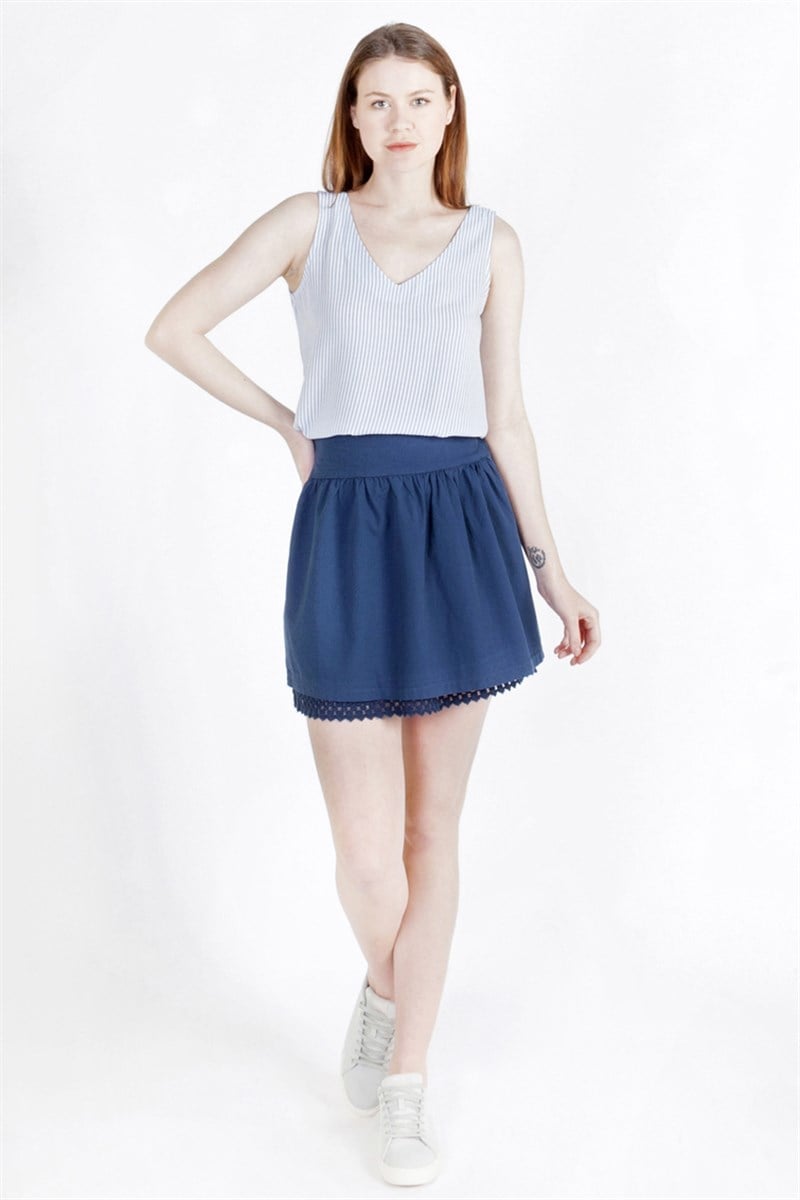 *Arka Beli Lastikli, Astarlı, Kısa Etek. Kumaş İçeriği: %100 Pamuk