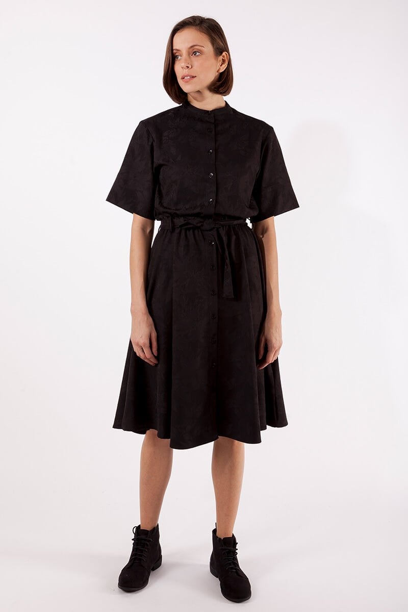 Hakim Yaka, Beli Lastikli Ve Ayarlanabilir Kuşaklı Elbise. Kumaş İçeriği: %80 Viskon %20 Polyester