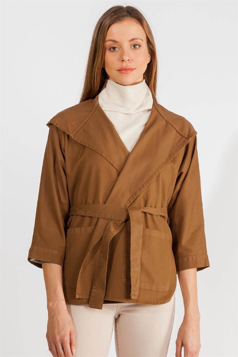 *Cepli, Yanlardan Yırtmaçlı, Ayarlanabilir Kuşaklı, Yarasa Kol, Standart Beden Ceket. Kumaş İçeriği: %100 Pamuk