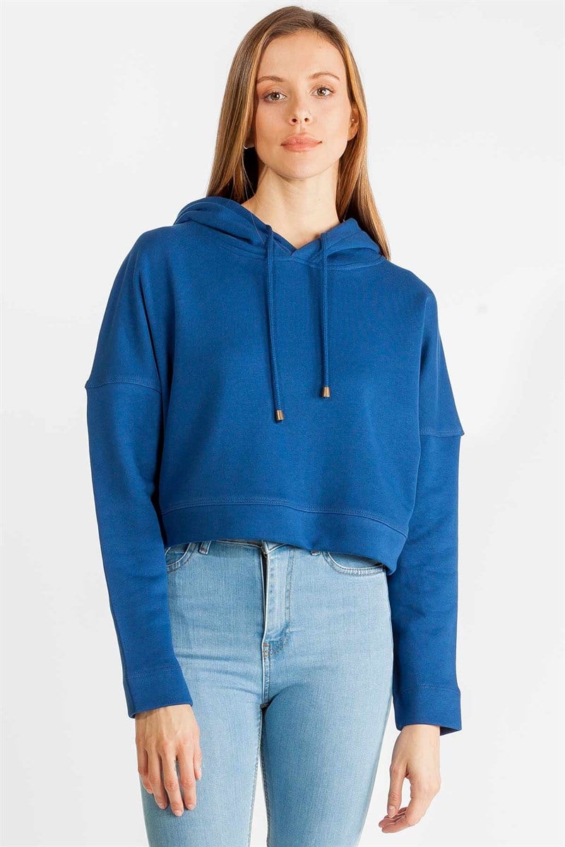 Düşük Kol, Kısa Sweatshirt. Kumaş İçeriği: % 100 Pamuk