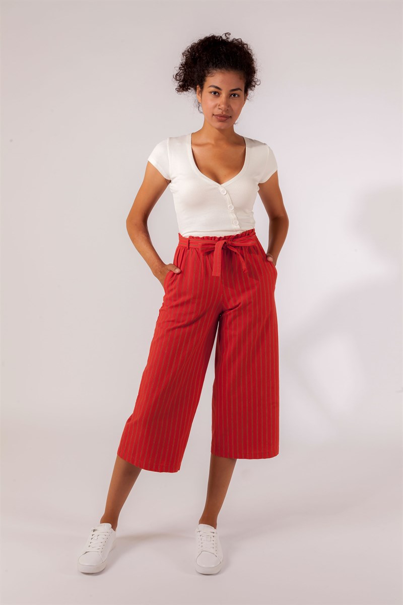 *Beli Lastikli, Yanlardan Cepli, Ayarlanabilir Kuşaklı, Geniş Paça Pantolon. Kumaş İçeriği: %100 Pamuk